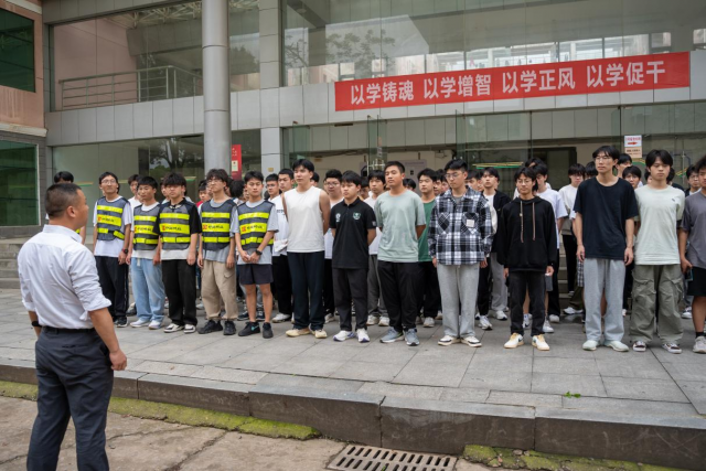 接到疏散指令后,同学们纷纷用湿毛巾捂住口鼻,严格遵循预定的疏散路线,俯身降低身体重心,有序撤离宿舍楼,在安全地带迅速集结完毕。整个演练过程紧张而有序,同学们表现出了良好的应急反应能力和团队协作精神。