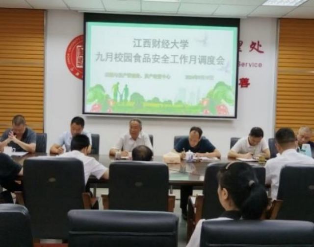 肖建文对近期校园食品安全和食堂管理重点工作进行部署,从“强化全链条全过程管理;落实网格化管理要求;严格执行原材料集中采购;提升完善“三防”设备及措施;推进明厨亮灶智慧监管;常态化开展环境卫生专项整治;加强用电、用气管理,排除消防安全隐患;加强食堂档口管理 ”等八个方面强调食品安全和食堂管理;姜瑜带领全体与会人员学习了省教育厅办公室《关于切实保障2024年中秋国庆期间学校食品安全的工作提示》、《江西省教育系统“互联网 明厨亮灶”平台管理办法(暂行)》等文件法规精神;黄广辉通报了开学以来膳食服务科对各食堂及档口进行的校园食品安全检查情况。