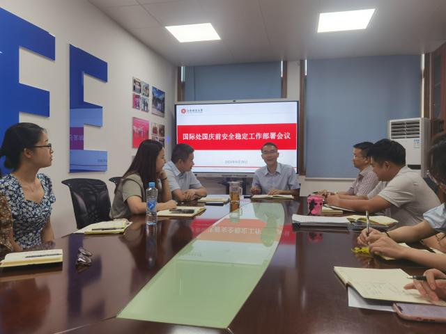9月29日下午,国际处召开国庆前安全稳定工作部署会议,全处工作人员参会。