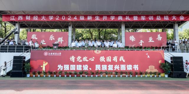 开学典礼由校党委书记刘耀彬主持。刘耀彬代表学校向每一位加入江财大家庭的新同学表示热烈的欢迎和衷心的祝贺。他表示,2000多名教职员工将与新生们携手成长,共同编织美好的未来。刘耀彬希望同学们在江财看到更多的可能性,不断拓宽视野,走出舒适区,搭建自己的新天地;看到更多的可行性,杜绝路径依赖,以开放的心态充实大学生活;看到更多的可塑性,深度思考,触类旁通,锻炼新思维。他期待学生们在未来的时间里成长为更广阔、开放且坚定的自己。