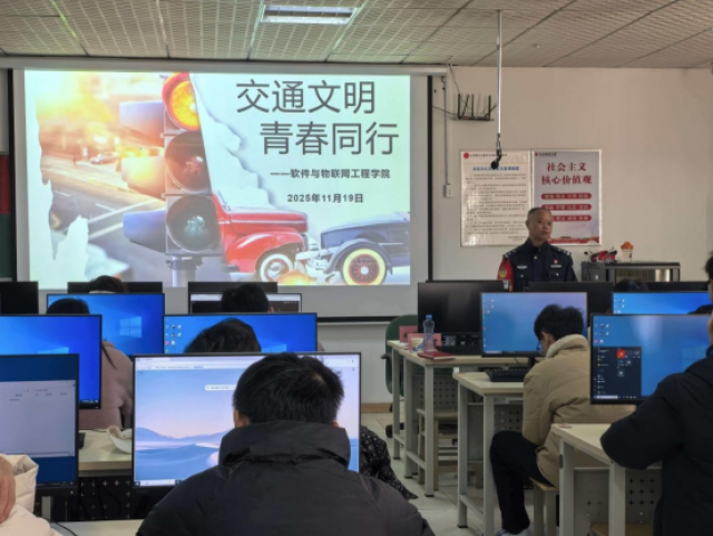 为了提高大学生的交通意识与反诈意识,加强识别诈骗团伙的能力。2025年11月19日下午,软件与物联网工程学院邀请辖区派出所刘荣鹏警官、杨军贤警官在荟庐W102举办了“交通文明 反诈同行”讲座。此次活动,软件与物联网工程学生积极参与,共同学习交通反诈知识。