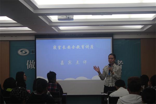 10月31日晚,工商管理学院学生会生活部、学习部、纪保部、心理健康协会在工商大楼共同举行2016级新生寝室长安全教育讲座。党委副书记黄雨虹担任本次讲座的嘉宾,学习部生活部常委宋秋红、学习部部长徐俪恒,生活部部长徐敏,心协副部杨昆、优秀寝室长代表以及16级各班生活委员、心协委员、纪保委员、寝室长参加本次讲座。
