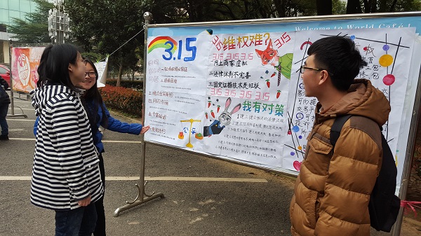 为更加深入地宣传《消费者权益保护法》及维权知识,增强同学们日常生活中的维权意识,3月15日中午,江西财经大学“三一五维权”活动于蛟桥北区举行,财税与公共管理学院维权分会积极筹备了此次宣传。