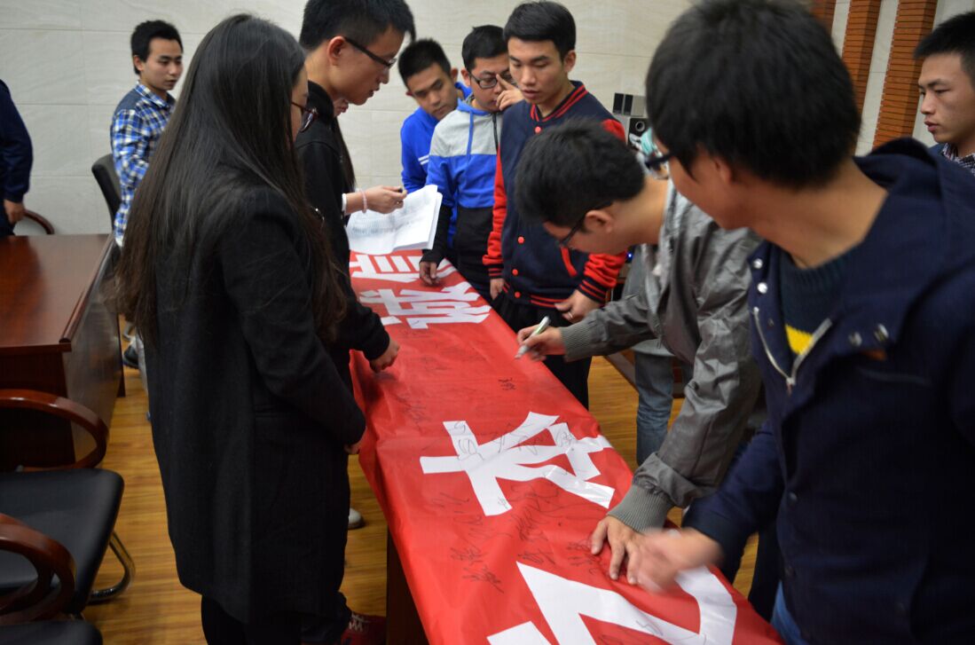 活动首先通过以PPT的形式,为大家介绍什么是学术诚信,哪些行为属于学术不诚信。PPT中以案例的方式为大家展示了近些年国内外学术不端的案例,以及这些案例对社会造成的不良影响。真实地向大家剖析了学术诚信问题,同学也初步认识到了学术诚信,以及学术不诚信的危害。接下来同学们踊跃发言,向大家分享自己对学术诚信的认识,以及体会。如程贤敏和肖钦同学认为学术诚信分为主动和被动两个方面来做出布防,主动的是,要合理并规范借鉴研究人员的科研成果,被动的是,要防止其他人剽窃自己的论文,保护自身的权利。并从自己的身边的例子举例,让同学们都有了深刻的认识。同时,在场的同学们积极参与讨论,充分意识到,诚信是一个人在现代社会生存、发展的基础,而学术诚信是每一个学者必须要重视的基本问题:一次考试不过,一次比赛发挥不好,关系都不大,但是一个人如果在诚信问题上犯了错误,这个很可能会影响一辈子的职业发展。过后大会宣读学术诚信倡议书,并提议全体到场的同学,签署学术诚信承诺书。同学们积极响应,签署承诺书。大会的最后,有同学提议在我们大会的诚信宣传横幅上签名,同学再次在横幅上面签上自己的名字,为自觉维护学术道德与科研诚信再次作出自己的一份承诺。
