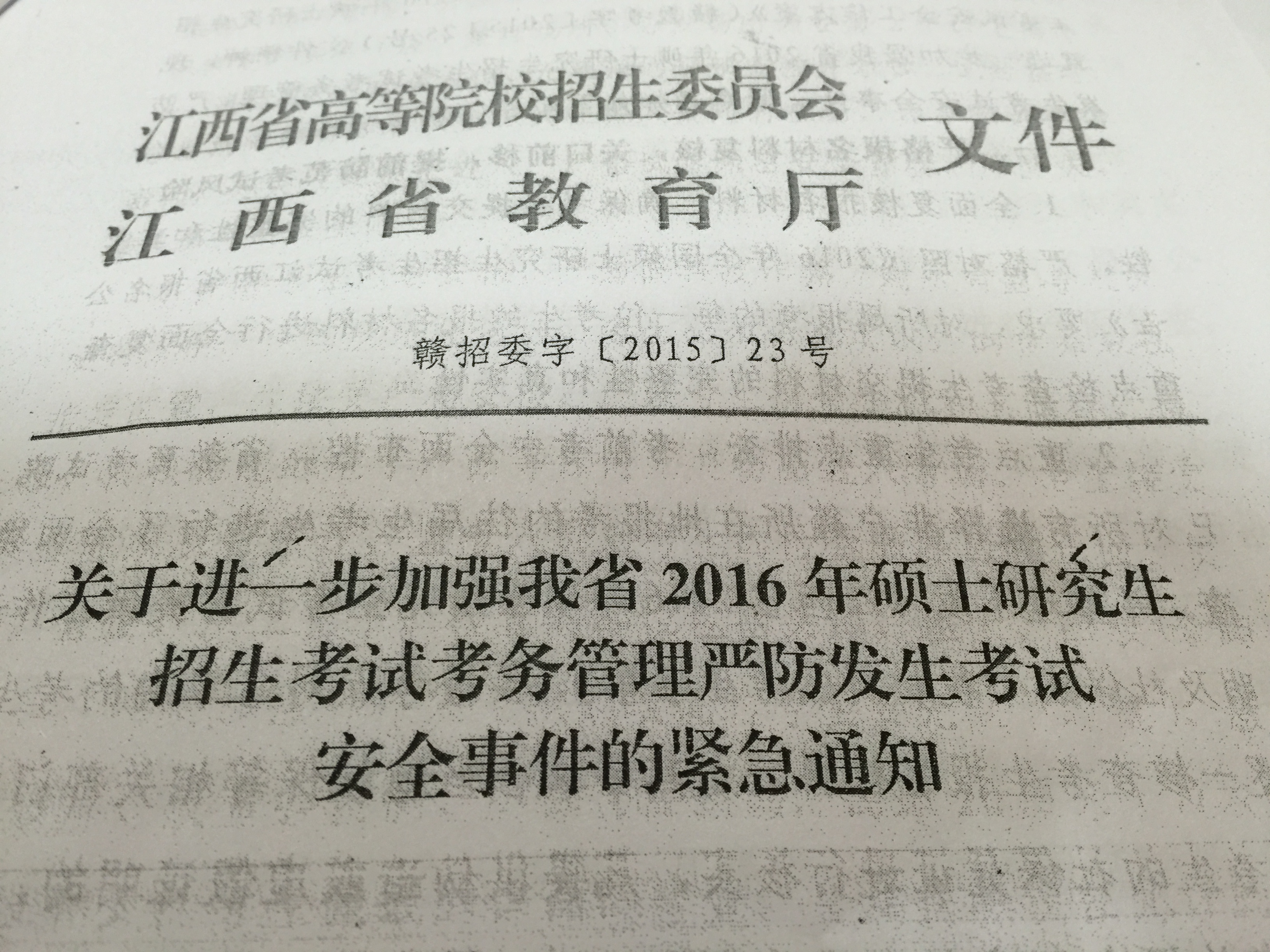 二是加强考务管理,确保试卷安全,严防替考和高科技作弊。严格试卷保管、整理和分发工作,确保试卷安全;严格考生入场安检,严防高科技作弊,为此还联系了江西省无线电监测单位,派移动巡逻车随时监测考场动态。