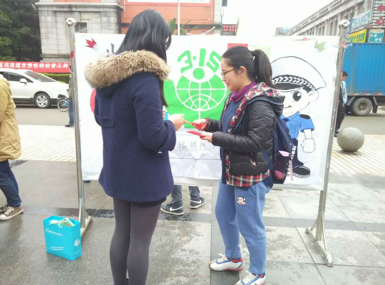 维权进展板。315当天,学院维权中心将以日常生活案例、消费小贴士、主题漫画等组成的展板展示于校园中。为过往同学对展板进行详细解说,展板上有短小精炼的维权案例易引起同学的思考和共鸣;有对国家《消费者权益保护法》的详细解说以提升同学们的维权意识。与此同时,维权委员还发放维护消费者权益的宣传单和知识小册子,耐心聆听同学们遇到的消费陷阱并解答同学们的困惑和疑问。