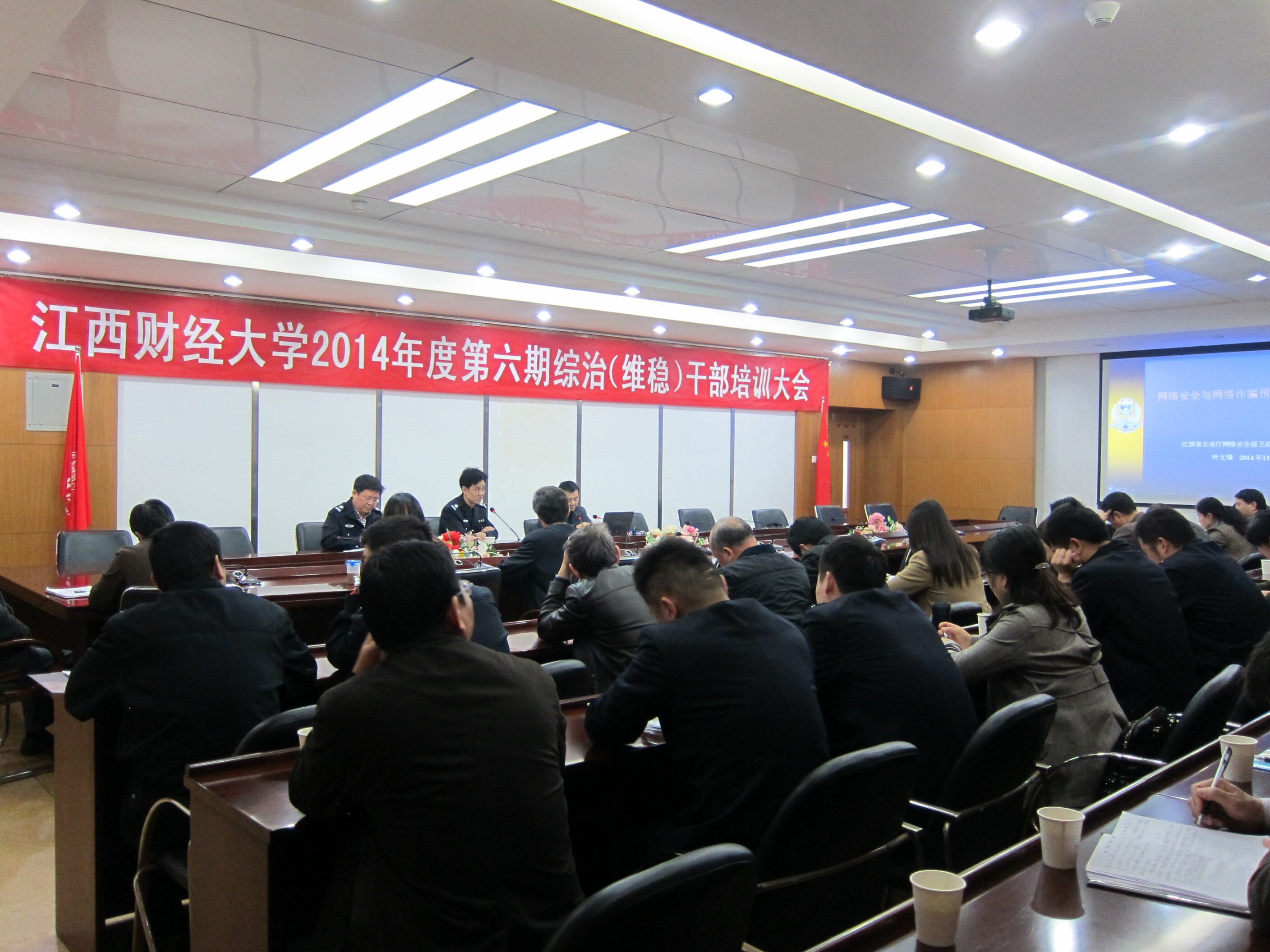 根据我校2014年综治(维稳)干部培训计划,11月27日下午2点半,校属各单位分管安全领导和综治联络人参加了在南区第二会议室开展的综治(维稳)干部第六期培训活动。本次培训由江西省安全厅网安总队副总队长叶文锋担任主讲,保卫处处长雷迎春主持。