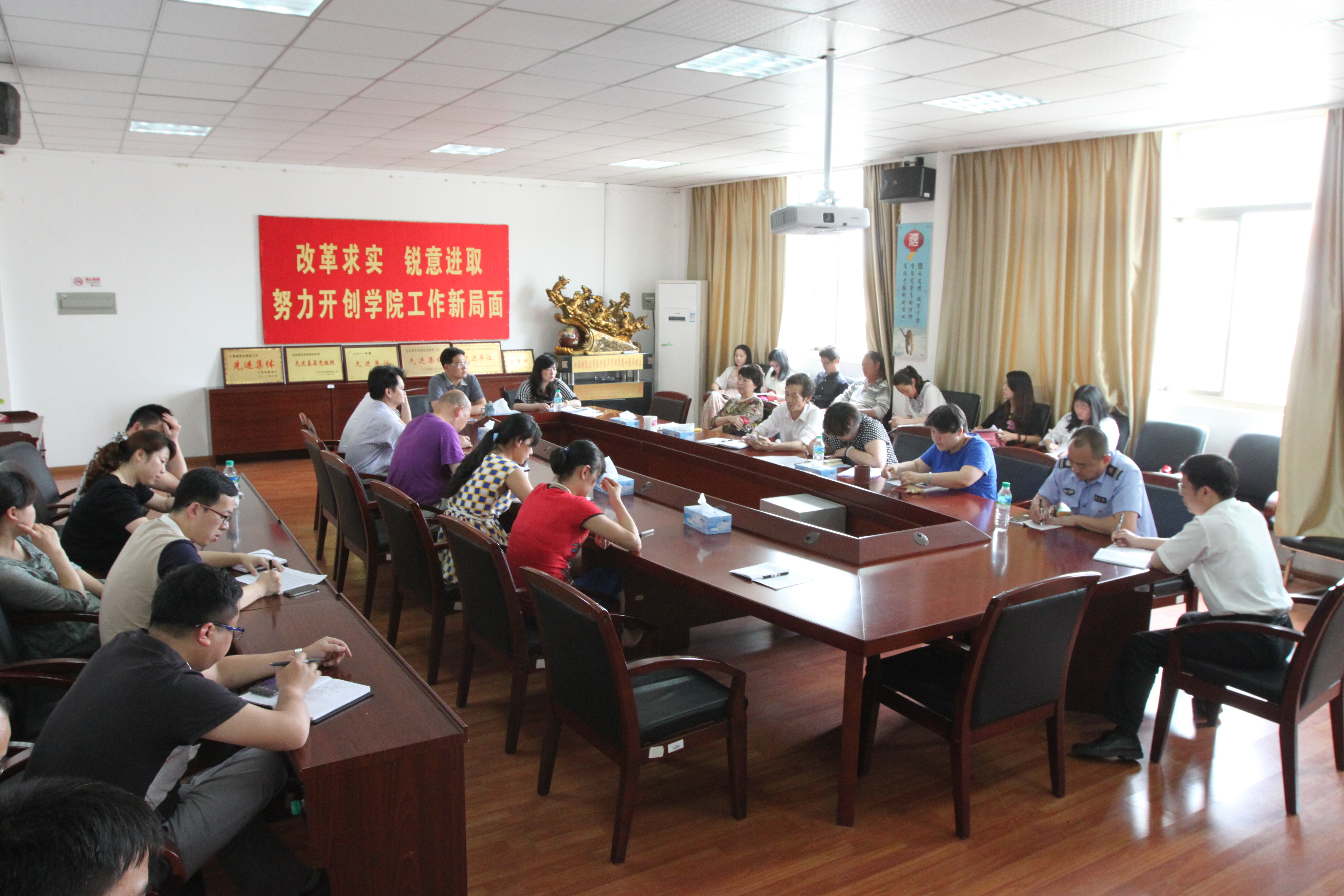 5月26日下午,现代经济管理学院在青云楼S403会议室召开安全稳定工作专题会议。学院领导、副科级以上干部和综治小组成员参加会议。