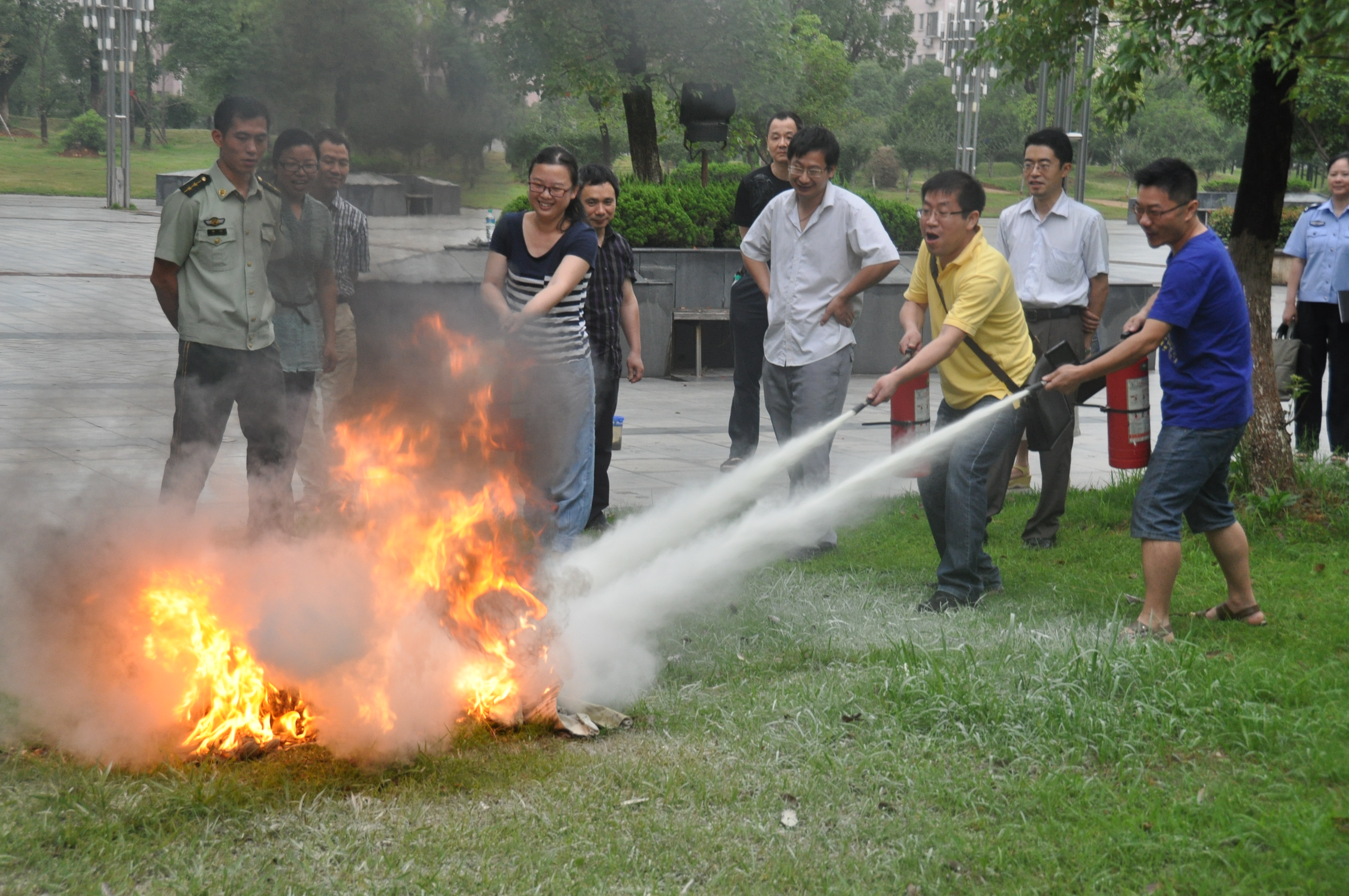 6月18日上午9时,胡捷警官首先在我中心蛟桥园501实验室对全体工作人员从如何报火警、火灾的预防、火场自救及逃生方法等消防安全基本常识进行了讲解,演示了灭火器使用的操作流程,并对部分工作人员关于消防方面提出的问题进行了详细解答。随后计算机实践中心全体工作人员在胡捷警官的指导下在南区操场进行消防演练,使人人都能熟练使用灭火器,人人都掌握了灭火器的使用技巧。