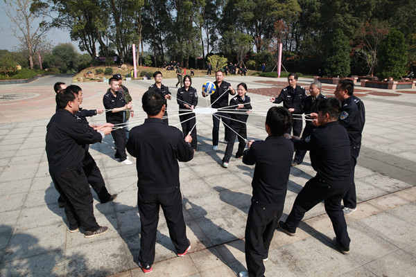 进入训练基地后,保卫人员立刻展现出饱满的精神面貌,在教官的指导下,开始了训练活动的第一个科目——军姿站立和队列训练。随着训练的深入,参训人员仿佛回到了军营,“1、2、3、4、5”迅速而有力的报数;“向左转、向右转”整齐而统一的停止间转法;“敬礼、礼毕”庄重而严肃的军礼EE。训练活动的第二个科目将保卫人员分成两个小队,以团队协作的方式开展了竞赛,“兵乓球接力”、“不倒森林”、“合力弹球”等项目看似简单,但都需要团队的每位队员密切配合才能顺利完成。虽然整个竞赛中出现了几次失败,但通过总结经验,鼓舞士气,双方团队都圆满的完成了比赛项目,整个竞赛在紧张和快乐的氛围中进行着,并且让每位参训人员体会了团队协作的重要,感悟了“团结就是力量”的精神。