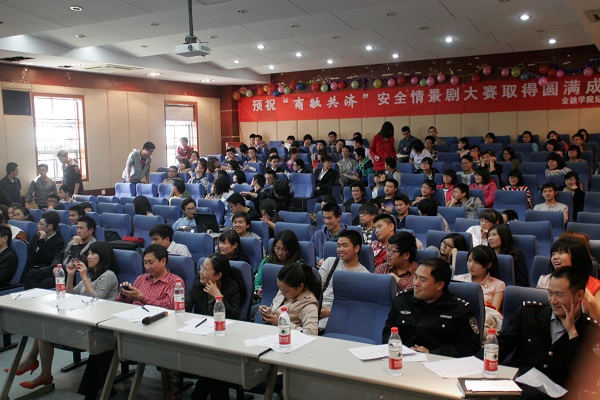4月12日下午两点,由校团委、保卫处、纪保部主办,工商管理学院、经济学院、金融学院联合承办的“商融共济”安全情景剧决赛在大学生活动中心103教室正式开赛。