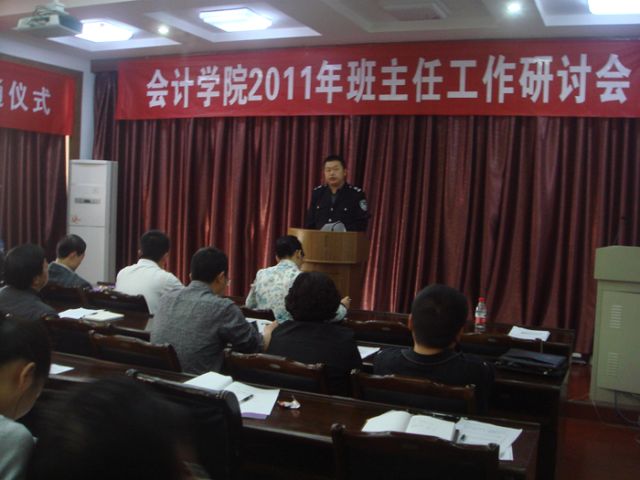 11月17日下午,会计学院在北综合楼四楼大会议室召开关于“心理健康教育”的班主任专题研讨会。会议邀请了校心理健康教育与咨询中心主任郭海峰老师、校保卫处保卫科科长徐亮作专题讲座。会计学院党总支领导及近百名班主任参加了会议。会议由会计学院党总支副书记陈光秀主持。