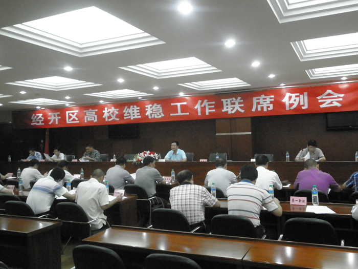 此次会议主要是对经开区高校安全稳定形势进行分析研判,共同商讨如何进一步做好高校的安全维稳工作,相互交流高校维稳工作经验,同时对存在的安全隐患问题进行逐一排查、及时纠正,共同营造经开区高校园区的安全稳定氛围。
