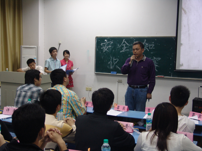 保卫处副处长易润水、经济学院党总支副书记吴太福应邀莅临了本次比赛,保卫处、经济学院党团干部以及学生代表100余人到场观看了本次比赛。易润水副处长为本次比赛致开幕词,对经济、国贸等学院在抓好安全教育和监督工作提出了表扬,并预祝本次安全知识竞赛决赛成功举办。