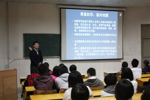 为进一步普及防震减灾知识,增强学生的防震减灾意识和自救互救能力,抓好校园防震减灾宣传阵地建设。10月30日下午,在4124教室,工商管理学院开展了防震减灾科普宣传教育活动。校保卫处办公室主任张步云应邀参加了活动,党总支干事远翠平老师及2010级新生代表100余人参加了活动。