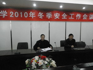 2010年11月26日下午3点,我校冬季安全工作会议在蛟桥园南区综合楼11楼第三会议室顺利召开。党委副书记王金华、副校长肖华茵、副校长易小明出席了会议,校属各综治责任单位党政一把手参加了会议,会议由肖华茵副校长主持。