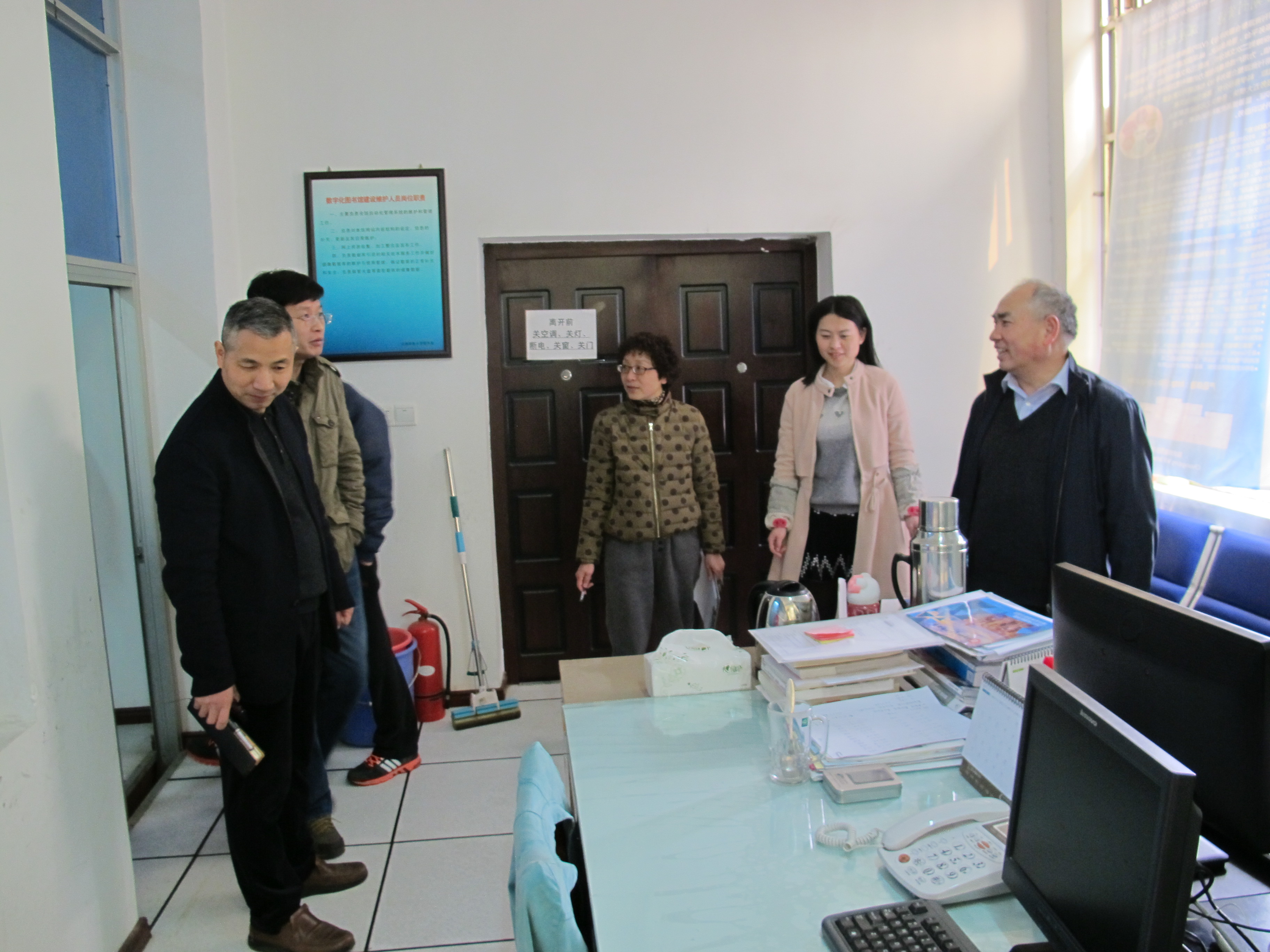 3月6日,图书馆领导班子对图书馆的公共区域与办公区域一一进行了走访,检查与落实图书馆的安全与环境卫生整治工作。