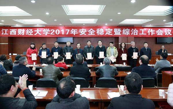 会议对2016年度综治先进单位及个人进行了表彰,颁发了2017年综合治理及安全稳定责任状。总结了学校2016年安全稳定和综治工作,全面部署了学校2017年综治维稳工作。