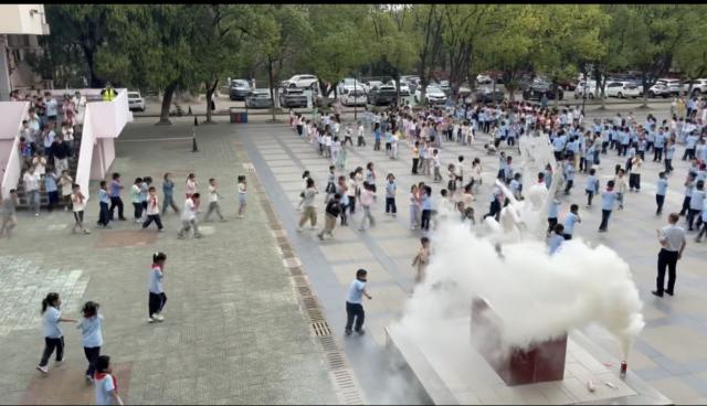 各班级到达安全区域,即刻清点人数,并向指挥小组汇报疏散情况。待疏散完毕后,总指挥张俊琦宣布“演练警报解除,演习结束”。整个过程紧张有序、衔接顺畅,展现了附中师生较强的应急反应能力。