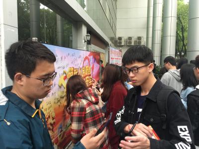 4月15日上午11点,为迎接第4个国家安全教育宣传日,保卫处分别在蛟桥园食堂和麦庐园食堂开展了国家安全教育日宣传展板和志愿者签名活动。