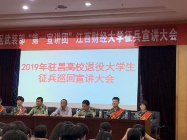 2019年5月20日14点30分,新建区武装部“第一宣讲团”江西财经大学征兵宣讲大会在蛟桥园北区学术交流中心召开。