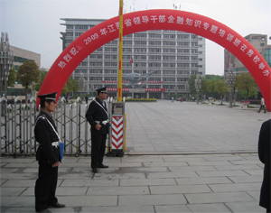 三、严格监督,细节制胜保卫处对此次参加安保的人员形象做了严格的规定,对执勤礼仪、言谈、着装做了详细的说明,并安排每日值班处长对各组进行检查监督。及时调整改进安保工作,4月14日,安全保卫组召开紧急会议,对4月13日的工作进行了肯定,并对当日部分人员的不当举止进行了严厉批评。 4月20日,安全保卫组召开第一阶段总结大会,会上总结了第一期“金融知识培训班”安全保卫工作好的工作、好的经验和做法,并对在工作中遇到的问题及提出了改进的意见,所有人员均表示将做好下次的保卫任务。