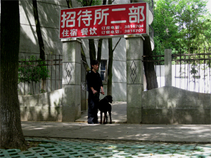 二、立体布防、不留死角学员住宿点的保卫工作是整个安保工作的重中之重。 4月10日,保卫处联合后勤保障处在招待所举行了消防安全及防盗安全讲座,并指导服务员进行了消防演练。 4月13日,随着学员陆续入住,保卫处正式启动《工作方案》,部署了三道防线,第一道防线交通疏导组对学员车辆进行核对发证;第二道防线,秩序维护组加强周边治安检查;第三道防线警卫组在白天执勤17个小时,巡逻组在夜间巡逻7个小时,24个小时不间断的警卫工作,保证了此次安保工作的顺利完成。