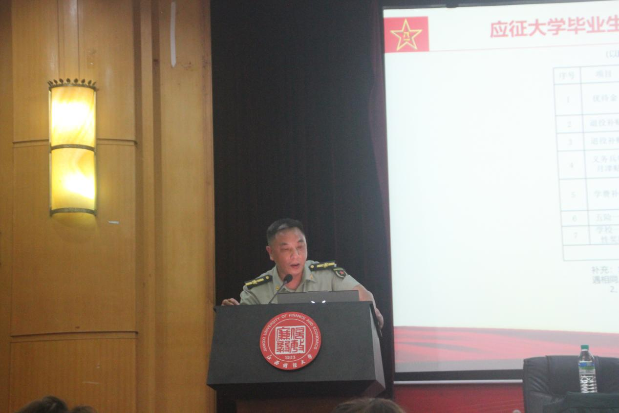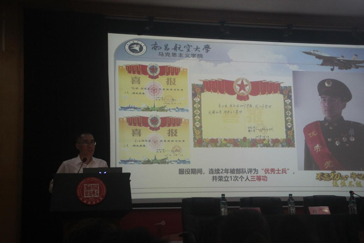首先,江西省高校党的二十大精神师生巡讲团成员、南昌市“征兵形象大使”、2023年度江西省“新时代赣鄱先锋”、南昌航空大学李江波教授分享了题为《大学生携笔从戎:值!——不管学士、硕士、博士,首先做好一名战士》的军旅收获,鼓励我校大学生积极报名应征、投身军营报效祖国。