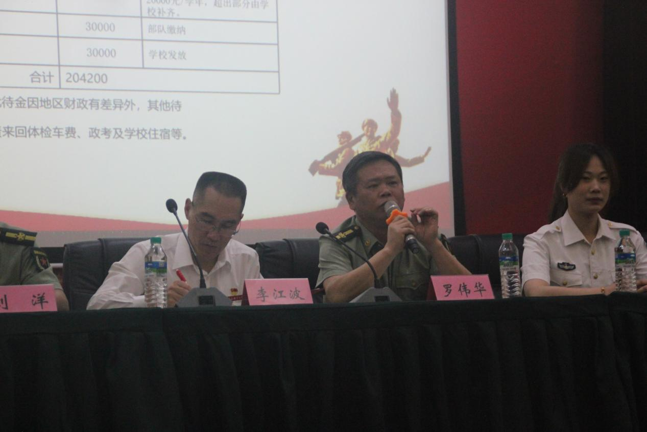 人武办主任陈世军就大学生参军入伍政策标准、各项奖励和体格检查、政考的要求等进行解读。在互动环节中,与会嘉宾详细解答了师生感兴趣话题。
