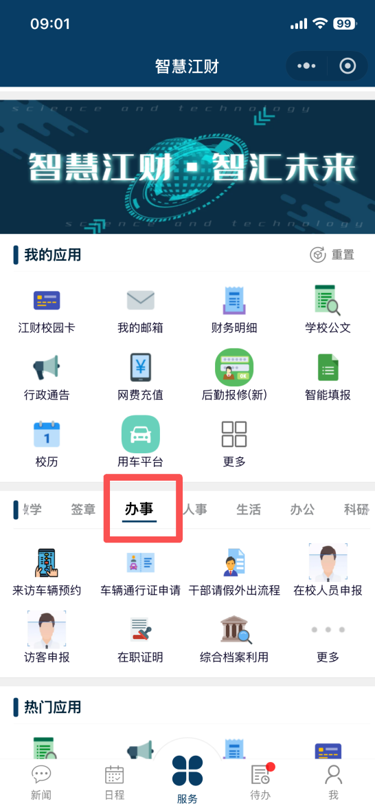 第一步: 第二步:选择页面中部的 ”办事”